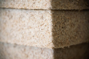 Crafted from wood industry side streams, this carbon-storing material helps lower the carbon footprint of buildings.